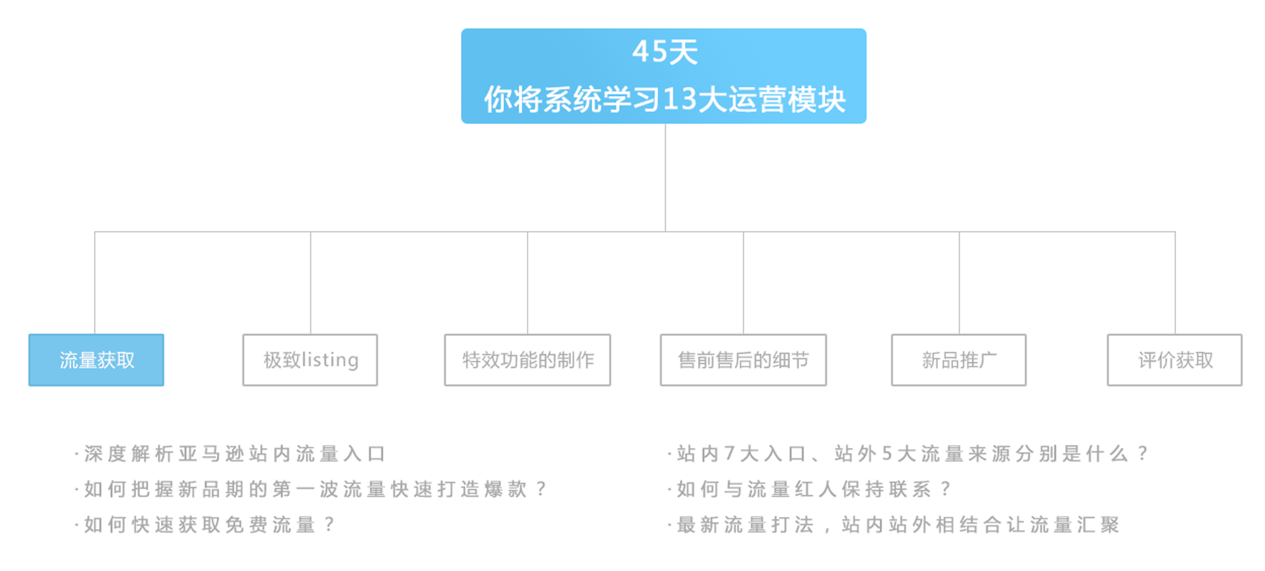3.?課程包含流量、listing、推廣等13大學(xué)習(xí)板塊