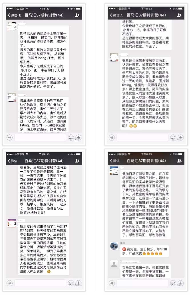 除此之外,課程現(xiàn)場學(xué)員分成兩隊(duì)進(jìn)行實(shí)戰(zhàn)PK,在亞馬遜后臺上架銷售產(chǎn)品,兩組之間進(jìn)行業(yè)績對比,總教官都會對其親自輔導(dǎo),昨天上了一天的課程后,大家都表示收獲滿滿,對運(yùn)營有了一個(gè)全新系統(tǒng)的認(rèn)識,我們來看下學(xué)員學(xué)習(xí)之后的反饋。