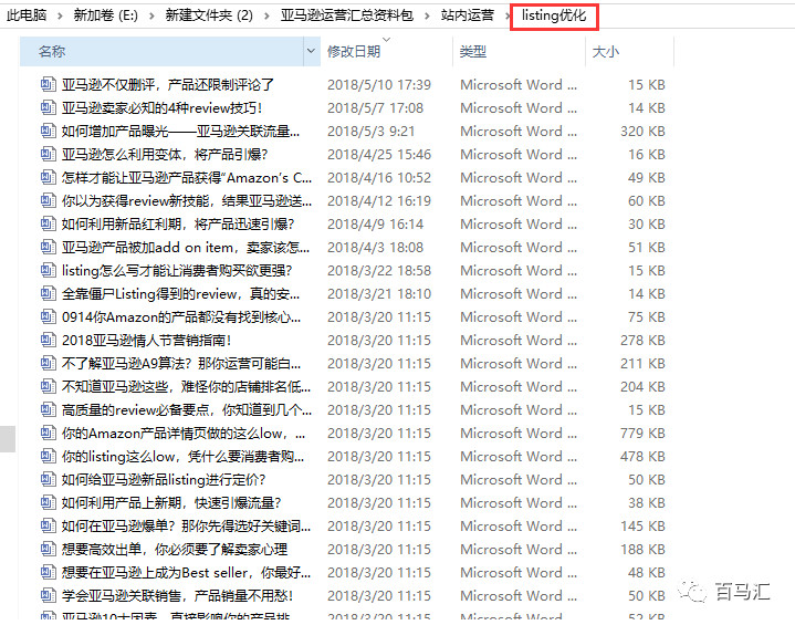 可是每次搜集的資料都是零零散散,自己需要相關(guān)資料的時(shí)候又找不到,為了幫大家節(jié)省時(shí)間,快速掌握初級(jí)入門(mén)技巧,我們將亞馬遜站內(nèi)運(yùn)營(yíng)的每個(gè)環(huán)節(jié)都整理匯總成了:① 亞馬遜運(yùn)營(yíng)匯總資料包。