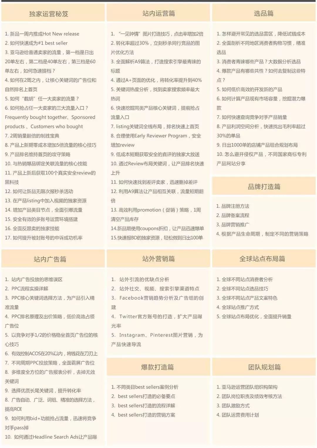 課程周期為3個(gè)月,每月1次,每次2天1夜,第一期課程為大家深入講解選品和listing優(yōu)化,后兩期內(nèi)容會(huì)根據(jù)學(xué)員運(yùn)營(yíng)情況量身定制,并且提供終身免費(fèi)復(fù)訓(xùn)和運(yùn)營(yíng)指導(dǎo),免除你的后顧之憂。