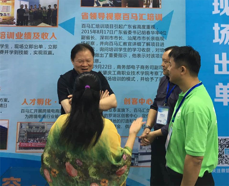 17號(hào)下午,第四屆中國(guó)電商展正在舉行,深圳市貿(mào)促委蒞臨百馬匯展位視察工作?,F(xiàn)場(chǎng)觀摩悉聽(tīng)由百馬匯主辦的“千人賣家對(duì)接會(huì)”的相關(guān)工作安排及效果預(yù)測(cè),對(duì)百馬匯已經(jīng)獲取的成績(jī)進(jìn)行了高度的肯定和鼓勵(lì),并對(duì)百馬匯長(zhǎng)遠(yuǎn)的戰(zhàn)略目標(biāo)規(guī)劃做出了指導(dǎo)和期望。