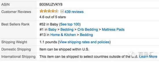 不過亞馬遜影響sales rank排名的指標(biāo)有很多,產(chǎn)品歸類也有影響。比如下圖所示,American Baby的嬰兒床墊在baby類別排名52,但在baby子類目下的“bedding”卻排名第一。