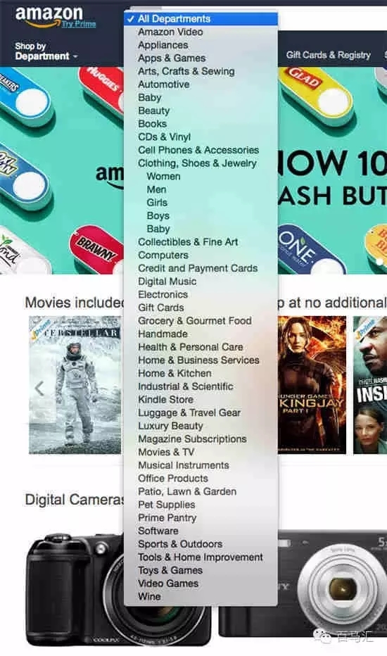 1、當(dāng)在亞馬遜上搜索某件產(chǎn)品時(shí),消費(fèi)者可能會(huì)指定一個(gè)特定分類搜索或搜索全部分類: