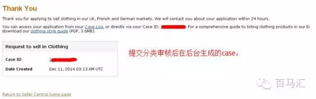 8、提交了申請之后您將會在您的注冊郵箱里收到類似于這樣的一封郵件,告知您的申請已收到,會在24小時(shí)內(nèi)回復(fù)。同時(shí),您的后臺也將會產(chǎn)生一個(gè)服裝分類審核的case: