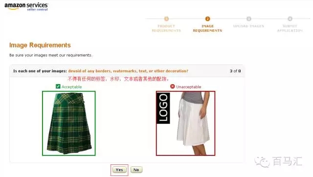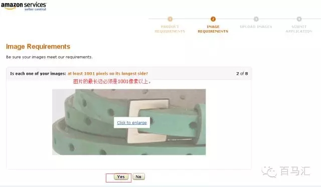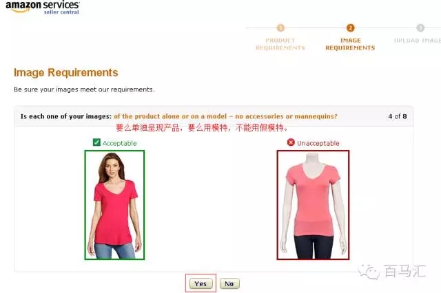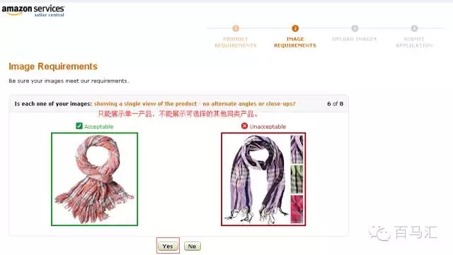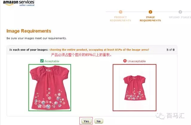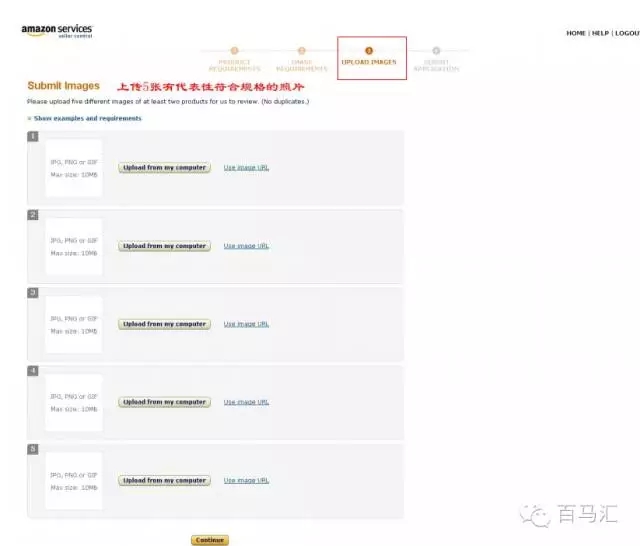 6、完成以上的圖片要求選擇題之后,您將會進(jìn)入到以下頁面,要求提供5張符合亞馬遜要求的產(chǎn)品圖片: