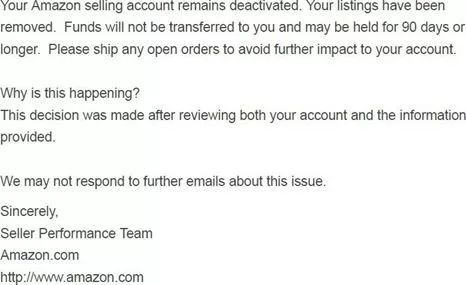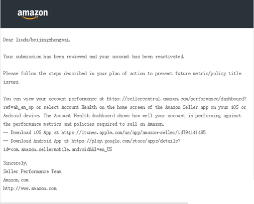 郵件標(biāo)題通常是:Your selling on Amazon account has been
