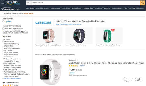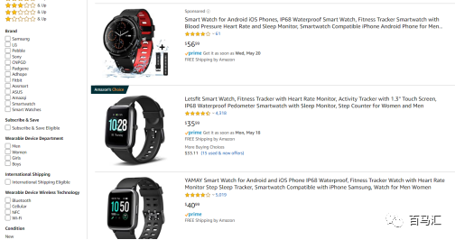 舉例:我們用“men smart watch”亞馬遜前臺搜下面這個(gè)產(chǎn)品也是可以搜到的,用monitor fitness 也可以搜索到。因此詞與詞之間不需要緊挨著,也不需要重復(fù),都是可以被亞馬遜收錄,然后被買家搜索到的。