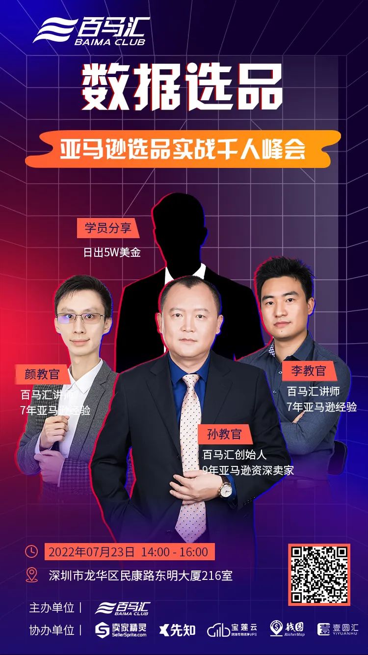 都看到這里了,那就不要錯(cuò)過小編給大家放送的一個(gè)福利!百馬匯將在7月23日下午14時(shí),舉辦一場(chǎng)關(guān)于“數(shù)據(jù)選品——亞馬遜選品實(shí)戰(zhàn)千人峰會(huì)”為主題的大會(huì),對(duì)選品有疑惑需要解答的賣家千萬不要錯(cuò)過。