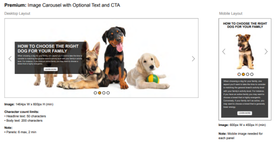 導航輪播模塊,共有4個模塊支持買家滾動瀏覽不同圖片或產(chǎn)品詳細信息,并可以與對比表和視頻結合使用。