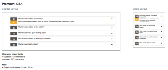 問答模塊以交互式菜單下拉列表的形式回答最多5個產(chǎn)品有關的問題,賣家可以好好的整理自己或者同行產(chǎn)品的差評,以及消費者對產(chǎn)品的常見疑問,設置成問答的形式在A+頁面展示,可以有效規(guī)避一部分的售后問題。