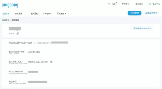 4、進(jìn)入Pingpong后臺(tái),“店鋪管理-店鋪名稱-賬號(hào)基本信息”獲取賬號(hào)信息。