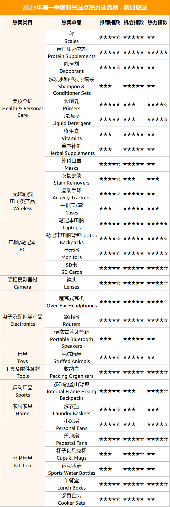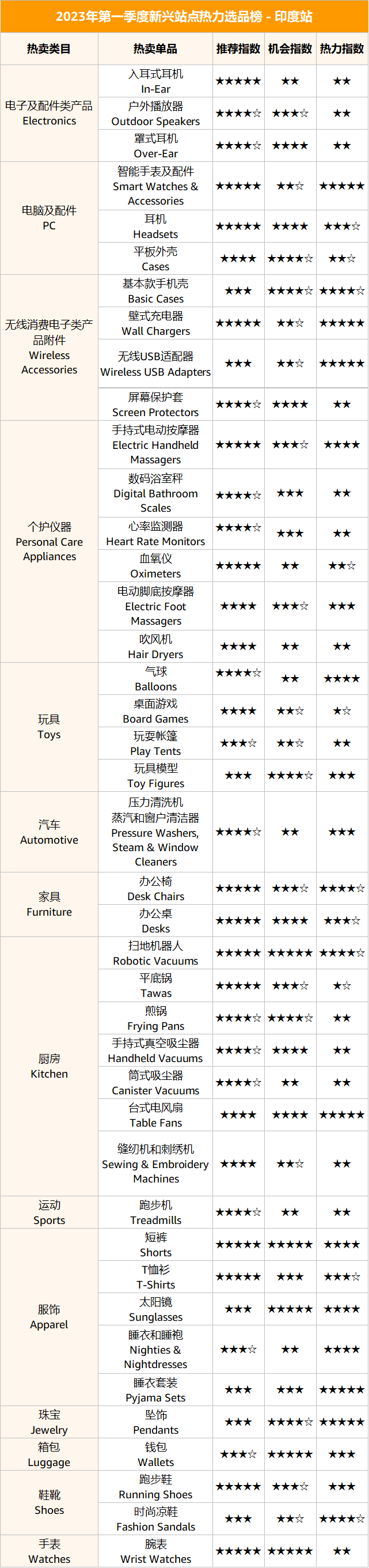 下面是站點熱銷選品榜單,亞馬遜商家可參考自己的需求來選品哦。