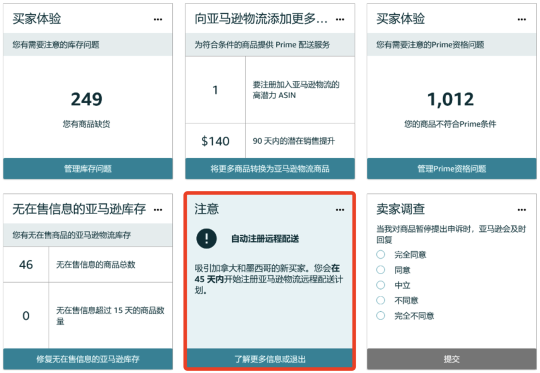 賣家可點(diǎn)擊在賣家平臺(tái)主頁的【自動(dòng)注冊遠(yuǎn)程配送】卡片來查看詳情。