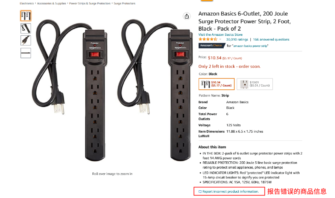 1、在商品詳情頁面上找到“報告錯誤的商品信息”的通道,如下圖所示: