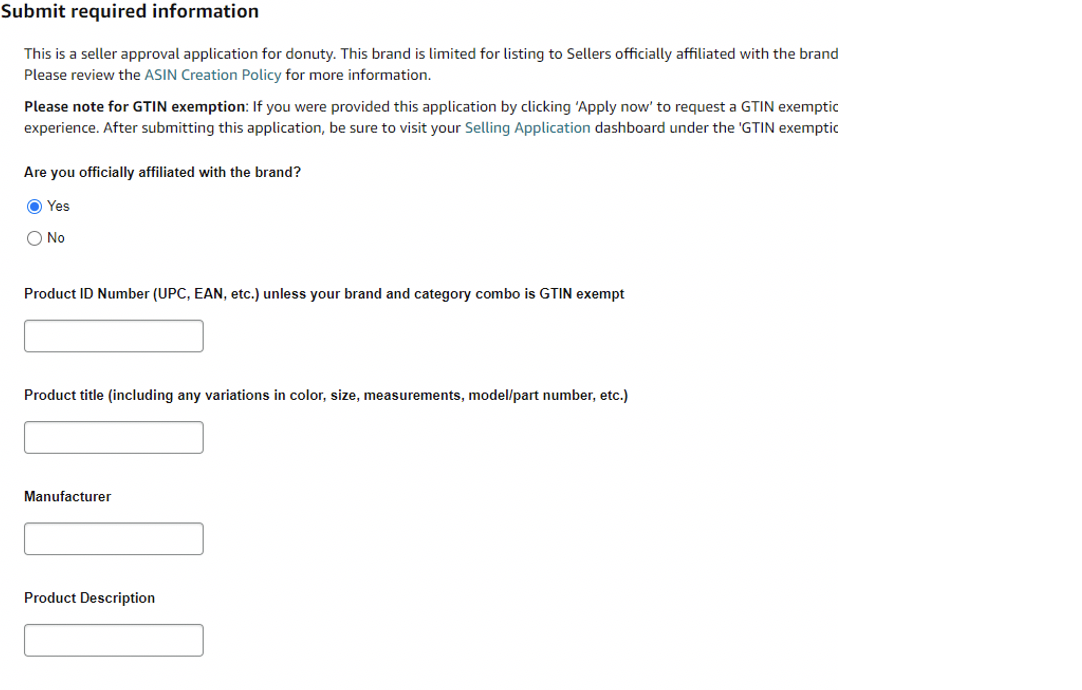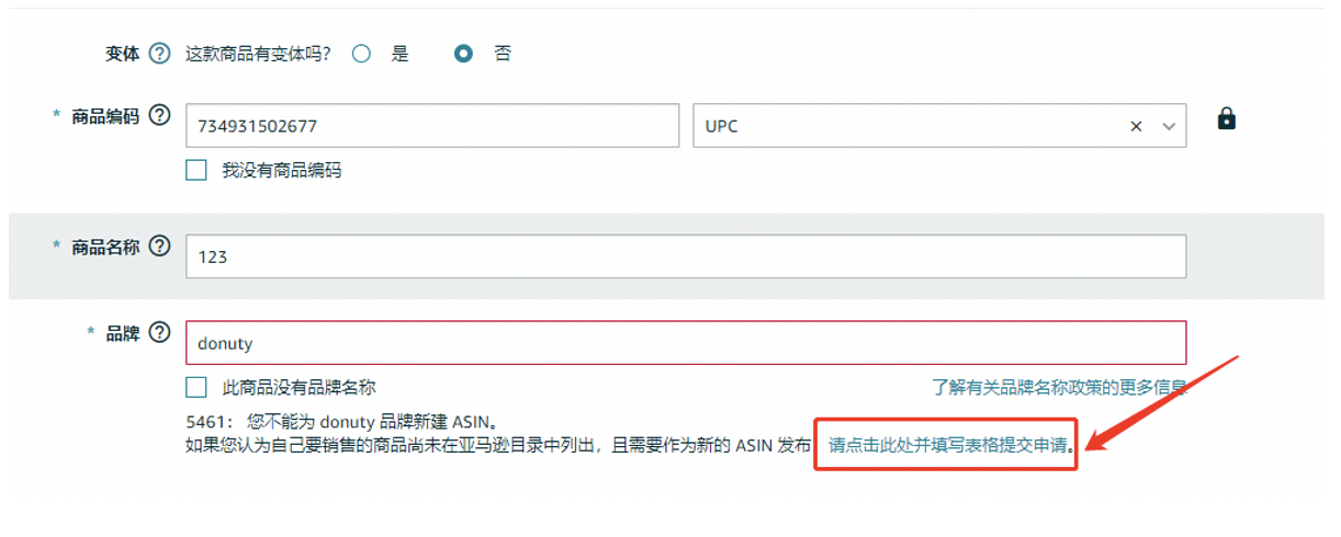 我們可以直接從品牌報錯的界面點擊鏈接跳轉(zhuǎn)到白名單的申請界面,在這里填寫一些基礎(chǔ)的信息并且上傳帶品牌logo的產(chǎn)品圖片或者包裝圖片。