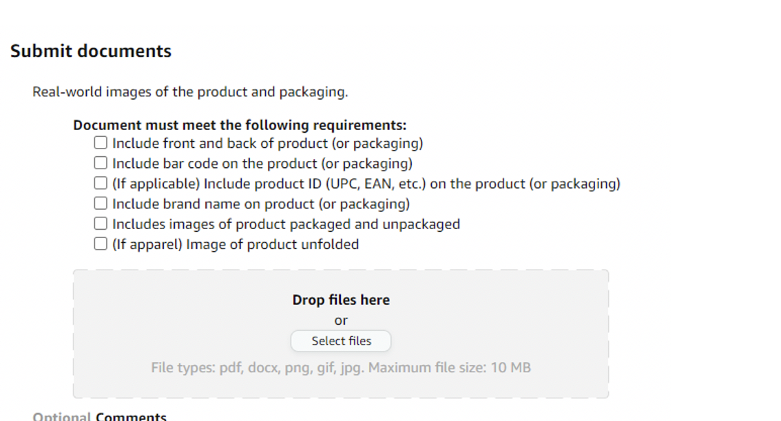 4. 產(chǎn)品的圖片一定要是實拍,體現(xiàn)真實,千萬不要PS,不要試圖挑戰(zhàn)亞馬遜的識圖技術(shù);5. 品牌名最好要印在產(chǎn)品上,比如燙金,壓印,激光等技術(shù),不要貼上去;6. 圖片位置可以上傳5-6個文件,可以把產(chǎn)品不同角度進行展現(xiàn);7. 除了上傳圖片,還可以上傳品牌TM標回執(zhí);8. 圖片位置下方的comments那一欄雖然是可選項,但建議多啰嗦幾句,比如說我是***商標持有者,強調(diào)品牌保護的重要性,可以給買家?guī)砀玫馁徫矬w驗和服務(wù)等。