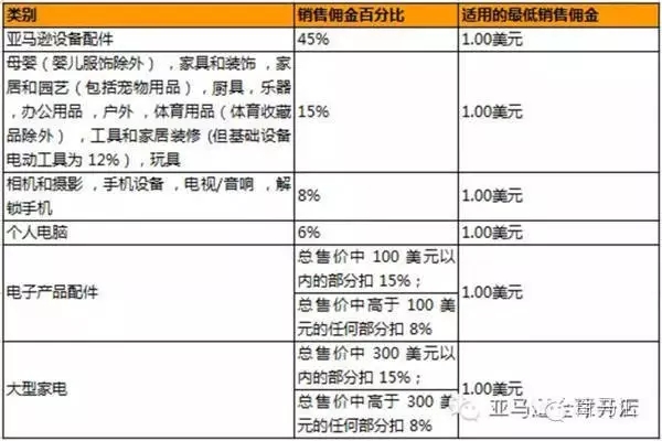 這項費用適用于所有賣家。不同商品的銷售傭金百分比和按件最低傭金都有不同的規(guī)定,詳細(xì)請參考下表。銷售傭金將收取以下兩者中的較高者:1)單價×銷售傭金;2)按件最低銷售傭金。舉例:一個母嬰產(chǎn)品的單價為5美元,其銷售傭金百分比為15%,其按件最低銷售傭金為1美元。由于5美元×15%=0.75美元<1美元,所以此件母嬰產(chǎn)品的銷售傭金為1美元。