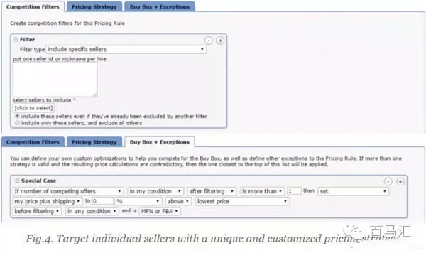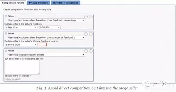 另一個方式是,利用不同情況下獨特的定價策略來與單一大賣家競爭。為此,可以設(shè)置兩層過濾條件。