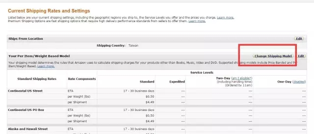 1.先點(diǎn)擊界面的”Change Shipping Model”