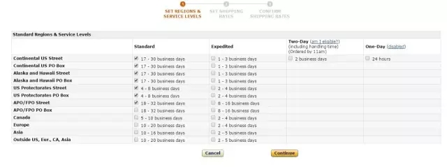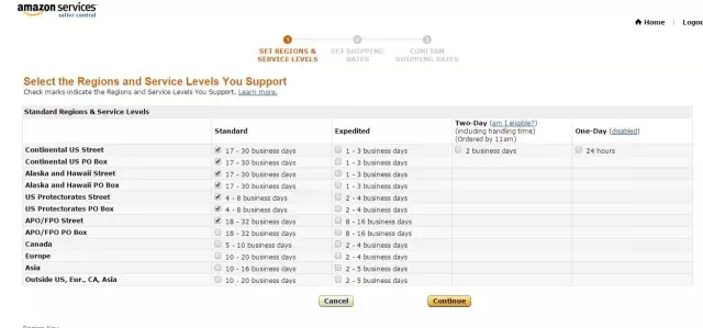 1. 選擇可以到貨的地區(qū)以及支持的物流速度(賣家需依照自身的狀況來設(shè)定)