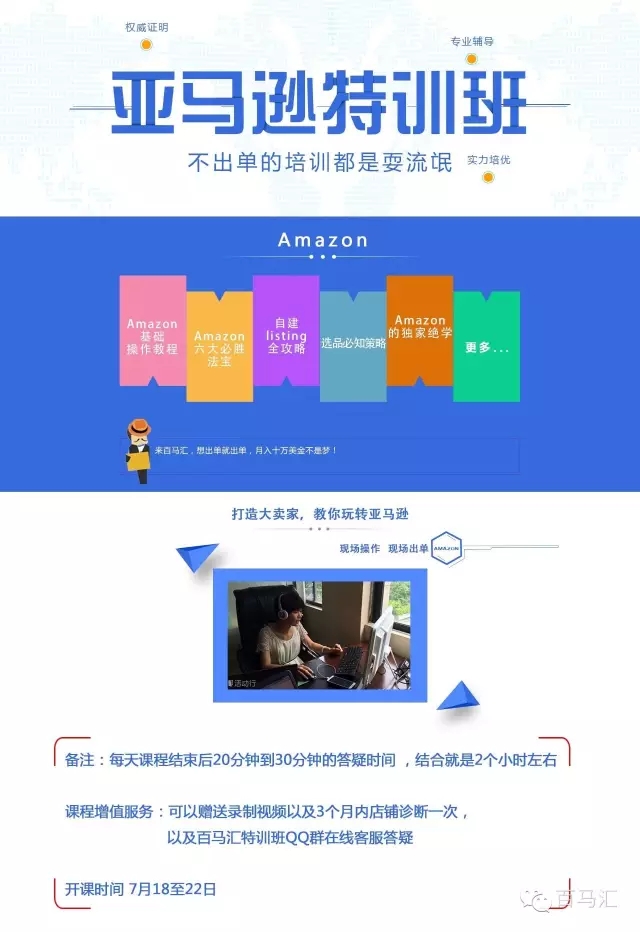 百馬匯亞馬遜線上特訓(xùn)班開(kāi)啟啦!與線下一樣的精品課程!與線下一樣的金牌大賣家!白天工作!晚上學(xué)習(xí)怎么賺錢!