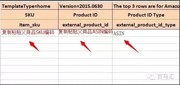 父商品填所有必填項,包括SKU、Brand name 、Product Name等信息,父商品首次上傳,填寫Update。子商品的SKU、ASIN粘貼在模板SKU、Product ID 列,并且手動填寫Product ID Type 為“ASIN”。