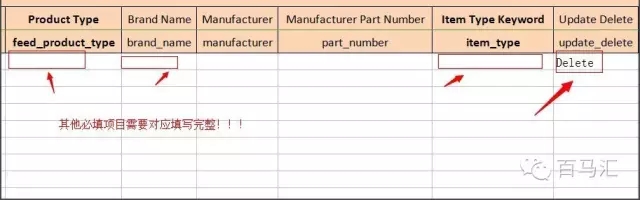 如上操作后,打開模板,copy父商品的SKU、ASIN碼分別粘貼在模板的SKU、Product ID 列,并在Product ID Type 輸入“ASIN”。Update Delete這一欄內(nèi)輸入“Delete”。如下圖所示: