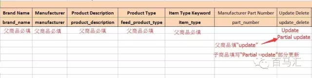 而“Update Delete”這一欄內(nèi)填寫“PartialUpdate”。(下載商品的對應分類,補充父子變體關系,父商品是不存在的,所以是從新創(chuàng)建,子商品是部分跟新(PartialUpdate),子商品的品牌名和item type keyword 要和存在的子商品保持一致。)以outdoors模板為例,如下圖所示: