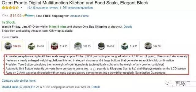 很多電商公司對文案大都是停留在一個Translate的階段,更談不上Editor了。當我們拿到一個商品,我們在了解產(chǎn)品本身的屬性的時候,可以參考那些優(yōu)秀賣家是如何寫賣點歸納的。還是以Kitchen Scale為例: