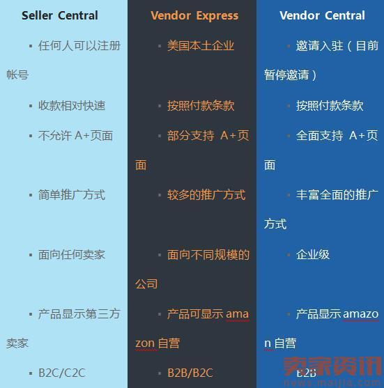 亞馬遜共有三個管理平臺,即Seller Central, Vendor Express, Vendor Central。
