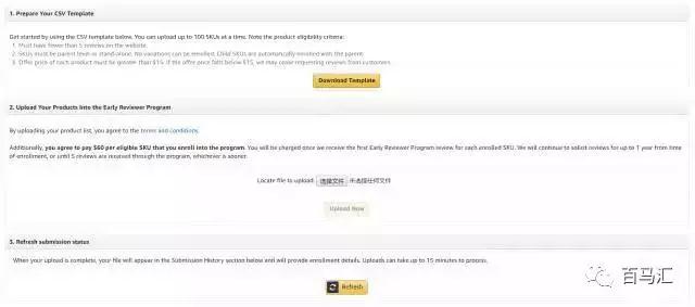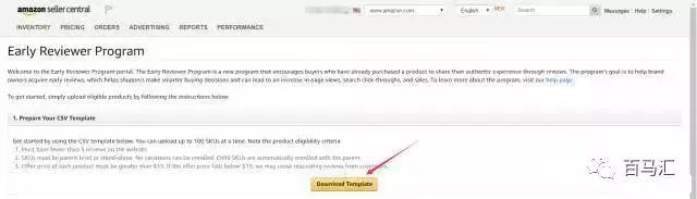 各位賣家打開后臺advertising→Early Reviewer Program,如果已經(jīng)備案成功,可直接下載模板: