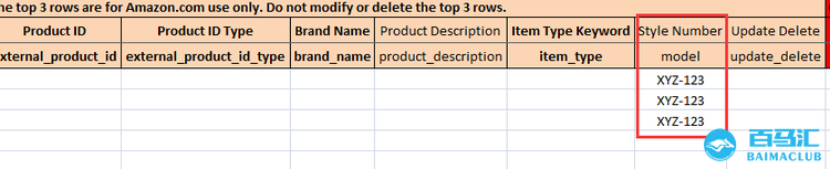 產(chǎn)品要刊登的時(shí)候,有些欄位會(huì)變成必填欄位,舉例而言:如衣服類別的 "Style Number", "Size", and "Color"同一樣式的衣服 (Style Number 一樣) 都是 123-MXY , 所以 Size 尺寸或 Color 顏色有不同的組合 如下