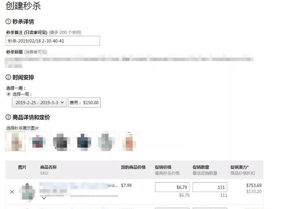 .確定秒殺的詳細(xì)信息,選擇時(shí)間段,參加秒殺的圖片,最重要的是確定好秒殺的價(jià)格,一般有建議秒殺價(jià)格,我們設(shè)置的秒殺價(jià)格只能小于等于推薦價(jià)格,然后設(shè)置好參加秒殺的數(shù)量就可以點(diǎn)擊提交,等待秒殺排期。