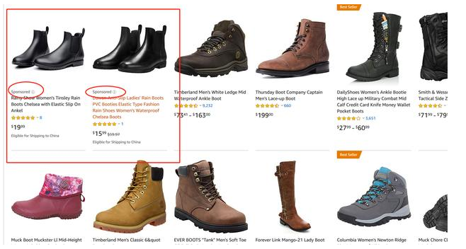 這種廣告基于關鍵詞,采用競標的方式,根據(jù)競價和關鍵詞表現(xiàn)共同決定廣告位的排名,按點擊收費。關鍵詞的“表現(xiàn)”就是指買家通過這個關鍵詞進入listing后最終的轉(zhuǎn)化,這是廣告搜索排名的第一決定因素,比重是高于競價的,如果關鍵詞的轉(zhuǎn)化效果不好,即使出價較高,廣告位也不會排在前面。(大家在電腦端搜索結(jié)果頁面和商品詳情頁面看到標有Sponsored的產(chǎn)品就是付費產(chǎn)品廣告)
