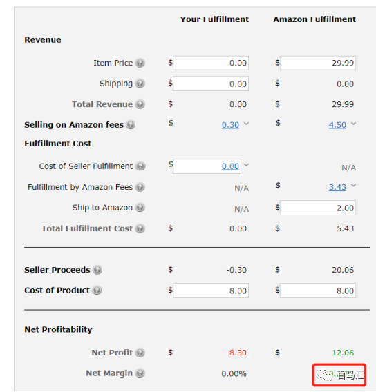 我們可以通過亞馬遜FBA費(fèi)用計算快速算出我們產(chǎn)品的毛利潤,比如下圖產(chǎn)品售價29.99美金,頭程費(fèi)用2美金,產(chǎn)品成本8美金。毛利為40.21%。