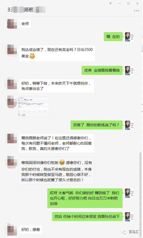 在達(dá)成業(yè)績目標(biāo)之后,他很就跟我們孫教官助理進(jìn)行了反饋,一是分享喜悅的心情,二是來到我們百馬匯領(lǐng)取獎學(xué)金。
