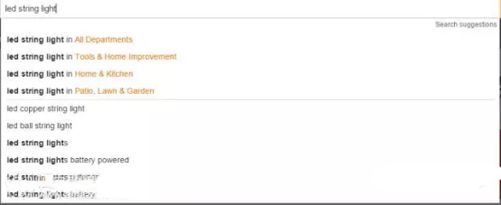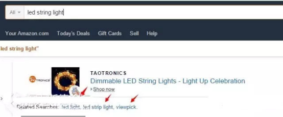 這里就會(huì)搜到很多與你產(chǎn)品更接近的關(guān)鍵詞,如果你用LED string light這個(gè)關(guān)鍵詞,您又可以搜到更多相關(guān)的關(guān)鍵詞