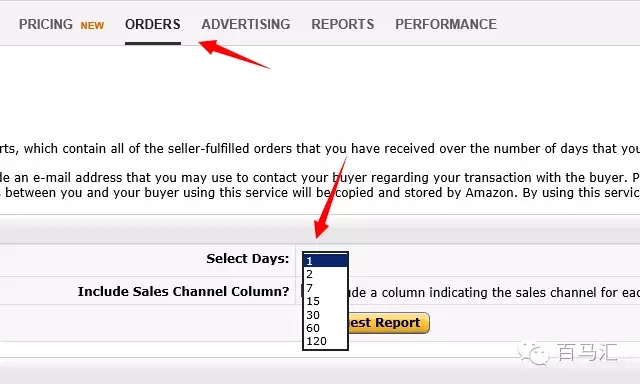 點擊訂單下的訂單報告進入如下頁:這些報告包含你所收到的(所選天數(shù)內(nèi))所有自配送訂單的訂單報告,其中包括那些你已經(jīng)取消或已經(jīng)確認為已發(fā)貨的訂單報告。
