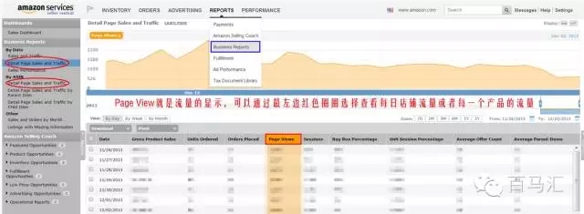 亞馬遜后臺里邊有report選項,選擇下拉菜單中的Business report,就可以看到以下頁面: