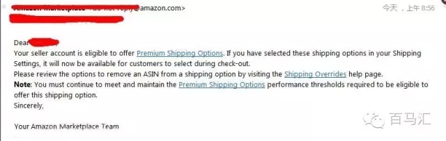 最近收到不少賣家反饋稱,經(jīng)常收到下圖這種有關(guān)“Premium Shipping Options”的亞馬遜郵件。