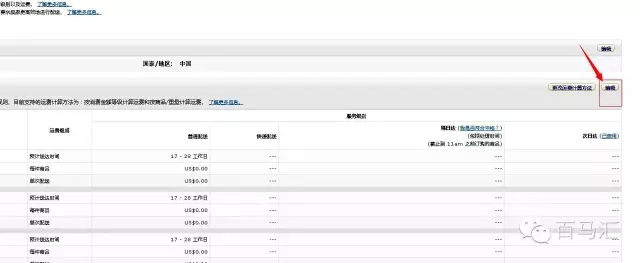 結(jié)合自身實際情況選擇“Per Item/Weight-Based”或是“Price Banded”。(以Per Item/Weight-Based按照商品數(shù)量或重量收取運(yùn)費(fèi)為例),然后點擊“編輯”按鈕,具體如下圖所示