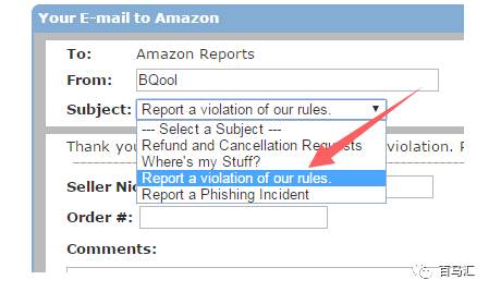 網(wǎng)址是:http://www.amazon.com/gp/help/reports/contact-us subject選擇" Report a violation of our rules "。
