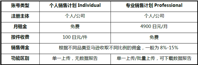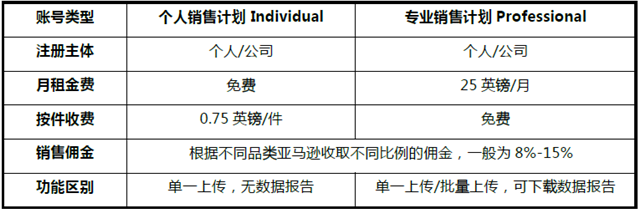 亞馬遜全球開店有兩種銷售計劃,專業(yè)銷售計劃(Professional),個人銷售計劃(Individual)。
