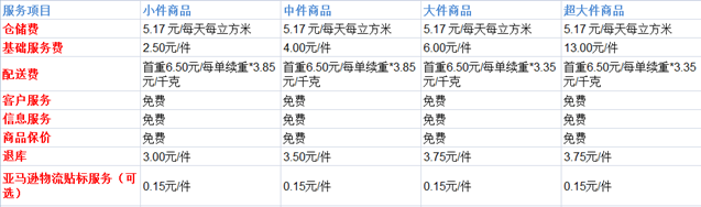 亞馬遜物流費用(FBA)=倉儲費+基礎服務費+配送費