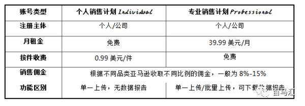 個(gè)人以及公司都可以申請(qǐng)“個(gè)人賬戶(Individual)”或者“專(zhuān)業(yè)賬戶(Professional)“。兩者只是在收費(fèi)以及功能上稍有區(qū)別,在流量上完全是一樣的,個(gè)人賬戶的listing也沒(méi)有上限限制。 以美國(guó)市場(chǎng)為例,主要區(qū)別如下: