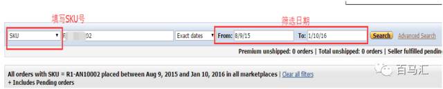 第四步: 在Manage Order界面利用買家所購買的產(chǎn)品的ASIN進行篩選(利用SKU也可以),注意設(shè)定好日期,日期要覆蓋買家留評論的日期,以下是利用SKU號的查詢結(jié)果