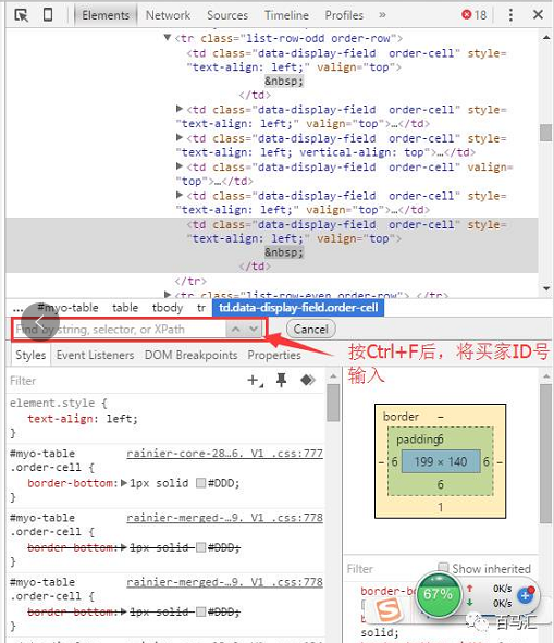 第五步: 設(shè)定后之后,鼠標右擊選擇“審查元素”,然后copy先前查詢到的買家profile ID號,使用快捷鍵“Ctrl+F”打開查詢框,將ID號粘貼即可看到結(jié)果