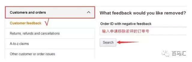3.選擇customers and orders下面的customer feedback,再輸入需要移除差評的訂單號,點擊search;