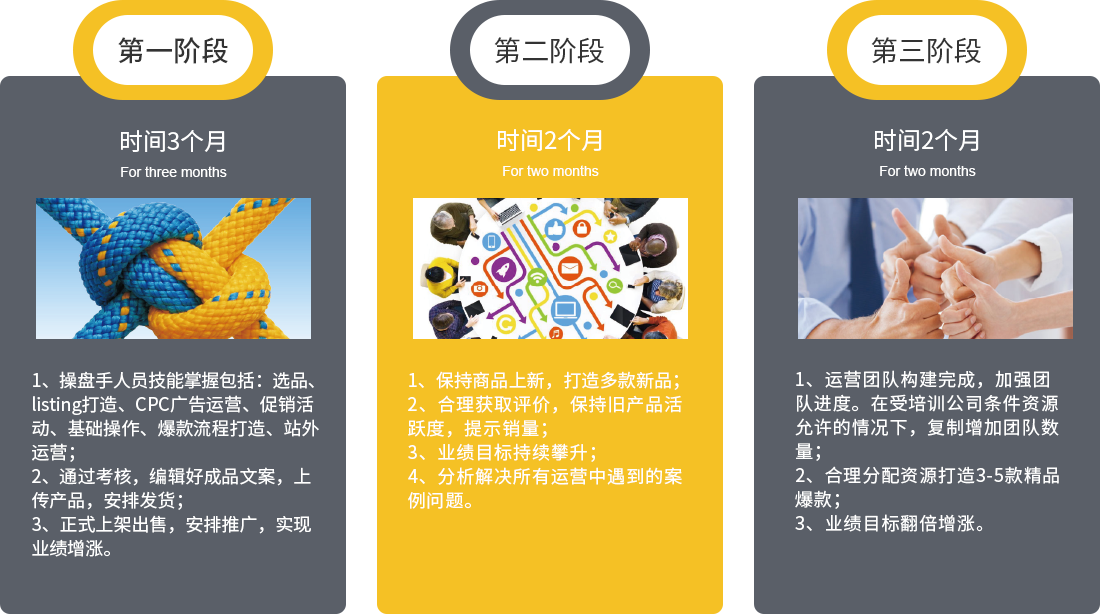 后勤包括財(cái)務(wù)、倉儲管理、賬號管理員,主要學(xué)習(xí)采購、回款、利潤核算等項(xiàng)目,為這個團(tuán)隊(duì)提供后勤保障,解決后顧之憂。