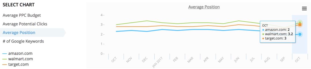 雖然亞馬遜并不是每個(gè)關(guān)鍵詞的搜索結(jié)果都排在谷歌的第一位,但亞馬遜在搜索結(jié)果頁的平均廣告位排序上,一直超過數(shù)以百萬計(jì)的其他廣告主,連沃爾瑪和塔吉特公司也不例外。